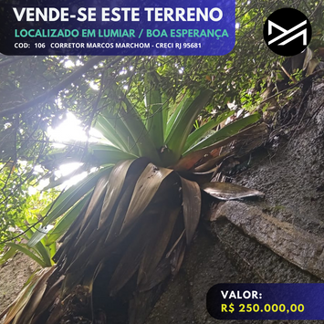 Cód. 106: Terreno Excepcional em Boa Esperança! Com 5,4 hectares, este terreno próximo a Lumiar oferece uma oportunidade única para projetos eco-sustentáveis, com topografia íngreme e biodiversidade da Mata Atlântica. Por apenas R$ 250.000,00, não perca essa chance e contate-nos para mais detalhes e visita.